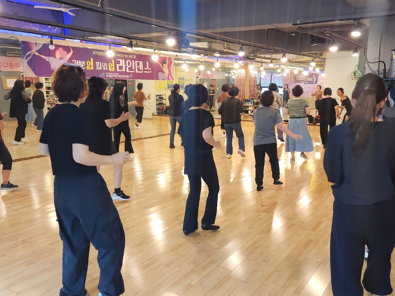 우리센터에서는 지난 9/3(수) 1회기를 시작으로, 10/ 1(수)까지 총 8회기에 걸쳐 ♥댄스로♥ 에서 진행되었던 「리듬타고 활력충전-라인댄스」 프로그램을 성공적으로 마무리했습니다.(●'◡'●) 이번 프로그램에서는 스텝터치, 락스텝, 킥 볼 체인지 등 다양한 라인댄스 스텝을 전문적으로 배우며, 참여자들의 신체 건강과 마음의 활력을 북돋우는 뜻 깊은 시간이 되었답니다. 무더위 속에서도 적극적으로 참여해 주신 장기요양요원 여러분께 깊은 감사의 말씀을 드립니다. 앞으로도 장기요양요원들의 건강과 힐링을 위한 다양한 프로그램을 지속적으로 마련하겠습니다. |
