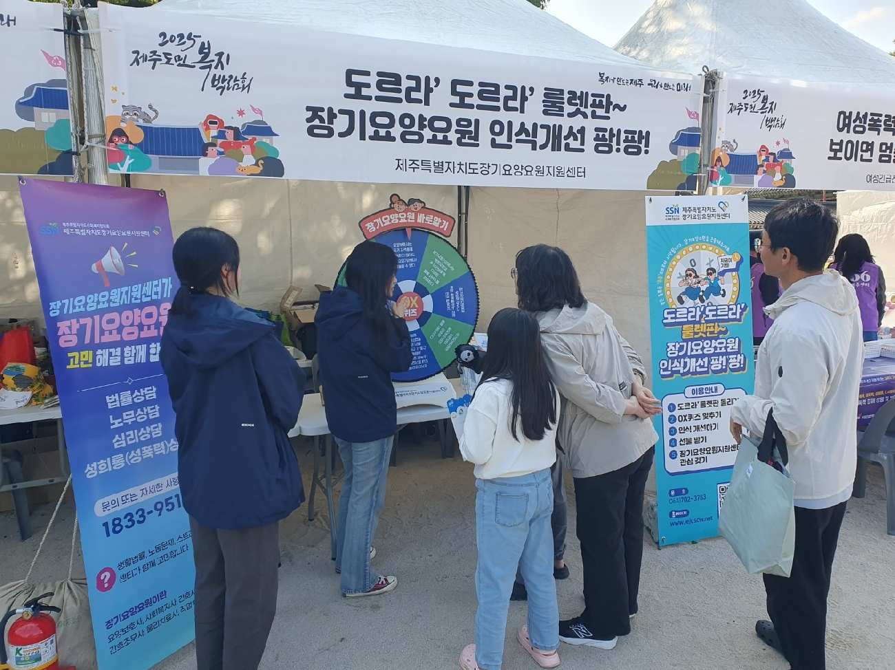 ‘도르라 도르라 룰렛판~ 장기요양요원 인식개선 팡!팡!’ 운영 부스에서 도민들은 룰렛을 돌리고 OX 퀴즈를 풀며 요양보호사의 소중한 역할과 중요성, 장기요양서비스에 대한 이해를 함께 배우는 시간을 가졌습니다. 돌봄 종사자에 대한 존중과 감사의 마음을 나누는 따뜻한 소통의 장이었는데요. 앞으로도 상호존중 돌봄을 위한 인식개선 캠페인은 계속됩니다. |