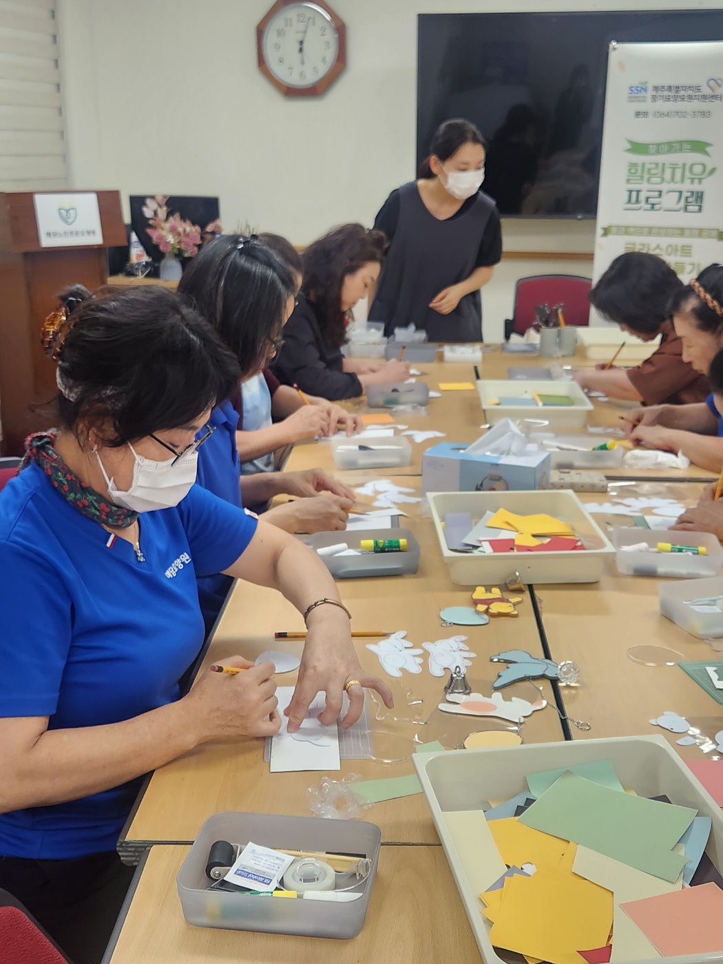 10월에는 4개 기관을 방문해 직접 필름지를 고르고, 오리고, 붙이고, 납선으로 마무리하는 등 모든 과정을 손수 완성해보는 시간을 가졌습니다. 썬캐처를 처음 접해보신 분들이 많았지만 하나둘 완성되어가는 작품에 “신기하다~”는 감탄이 절로 나오는 시간이었습니다. (●'◡'●) 공들인 시간만큼 반짝반짝 개성이 담긴 썬캐처와 도어벨이 완성되었죠. 11월에도 힐링의 시간을 이어갑니다~ 색의 신비함이 담긴 나만의 썬캐처 만들기, 기대해주세요! 언제든 제주장기요양요원지원센터는 열려 있습니다. 소소한 이야기든 문의든 편하게 나눠주세요 :) |