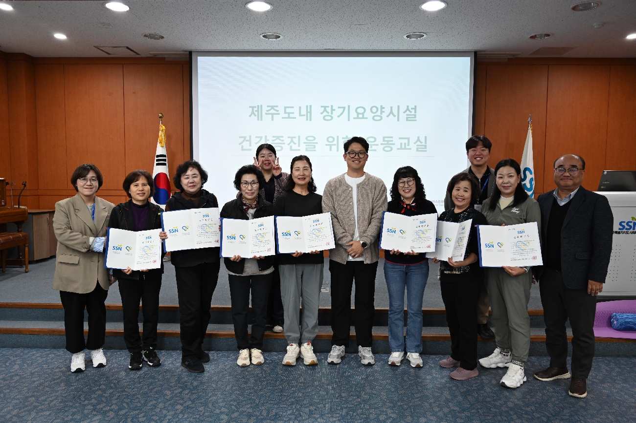 지난 11. 3.(월) ~ 11. 13.(목) 우리 협의회 본관 2층 삼다수홀에서 어르신돌봄 운동법 교육 7~10회기 교육을 실시하였습니다 이번 교육은 장기요양요원이 어르신 돌봄을 수행함에 있어 장기요양기관 현장에서 적용할 수 있는 앉은자세 운동법, 선자세 운동법, 슬로우조깅으로 구성되었습니다 앞으로도 장기요양요원들이 어르신 돌봄 현장에서 활용할 수 있는 다양한 교육을 추진할 계획입니다 많은 관심과 신청 부탁드립니다! 교육문의 064)702-3783 |