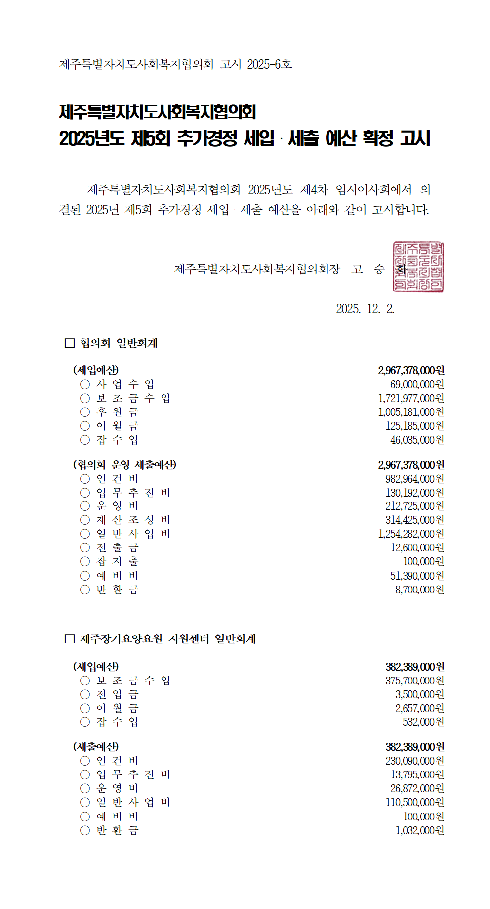2025년도 제4회 추가경정 세입 세출 예산 고시