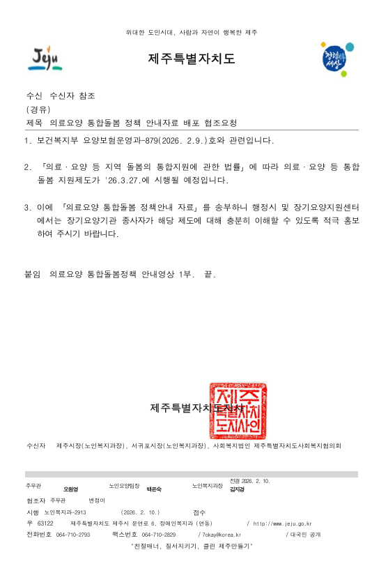 보건복지부 요양보험운영과 및 '도' 노인복지과 협조 요청에 따라